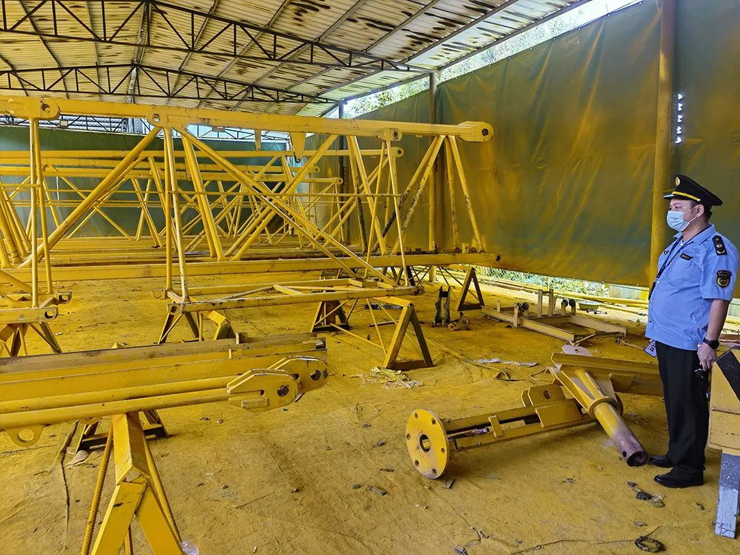 經(jīng)查,該公司主要從事吊塔翻新加工,未辦理環(huán)保審批和自主驗收手續(xù),設有檢修、拆卸、打磨、焊接、噴漆等工序及噴槍、手磨機等生產(chǎn)設備。現(xiàn)場檢查時,該公司的鐵皮廠房處于半露天狀態(tài),僅用鐵皮作頂、帆布作圍檔,地面覆蓋了一層厚厚的黃色漆垢。鐵皮房內(nèi)工人正在打磨塔架部件,產(chǎn)生的粉塵未經(jīng)處理在室內(nèi)無組織排放。